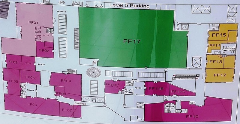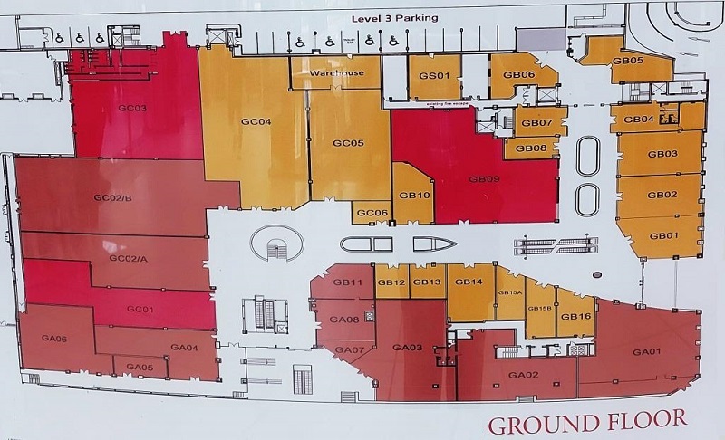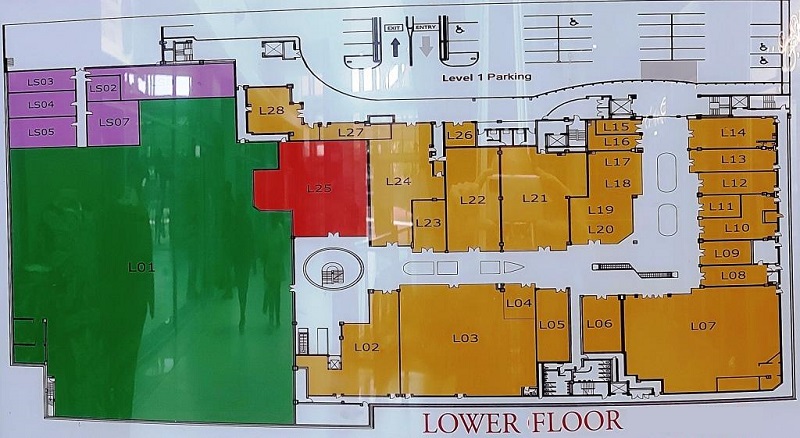 Listed in order clockwise from the Parking Level 1 entrance (i.e. shops on your left first), around to Mazi-Mo's Play Arena and the Post Office, and continuing clockwise back to the Parking entrance: